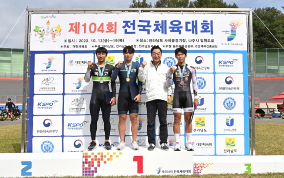- 자전거 남자고등부 1km 개인 독주에서 첫 금빛 낭보 -