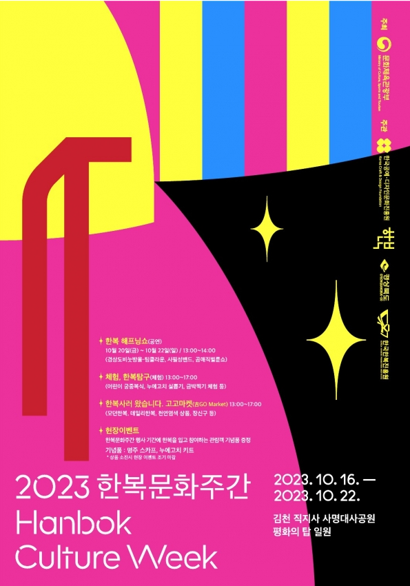 2023년 한복문화주간은 10월 16일부터 22일까지이다. 행사기간동안 매일 어린이 궁중복식, 버섯팽이, 제기차기, 퍼스널컬로로 나만의 한복찾기체험 등의 체험이 무료로 진행되며 한복 및 장신구 등을 전시 및 판매중이다. 오는 20일(금)~ 22일(일) 13시 ~ 14시에는 한복 헤프닝쇼가 공연될 예정이다.