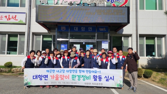 | 대항면 자유총연맹(회장 구명철, 박외선) 남녀회원과 대항면(면장 최정숙) 직원 등 30여 명은 10월 18일 대항면 직지사 방면 도로와 대룡리 용복천, 도로 주변을 중심으로 환경 정비 활동을 했다.