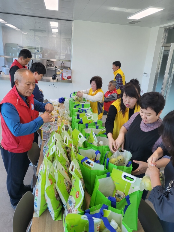 | 대덕면 마을 복지계획 실행위원회(위원장 윤광혁)는 지난 10월 18일 「마음나눔 행복 만찬」 식재료 꾸러미 만들기 행사를 했다. 추수의 계절 가을을 맞이하여, 햅쌀과 대덕에서 생산된 사과와 부식 재료로 구성된 꾸러미 전달을 통해 안부를 묻고, 소외된 이웃 챙기기에 마을복지실행 위원들이 나섰다.