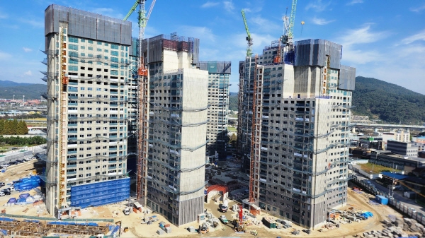 |  | | | ⓒ 김천내일신문 | | 김천의 원도심에 부흥의 시발점이 될 것으로 기대되는 부곡동 푸르지오 공동주택(703세대) 신축공사의 공정율이 9월 30일 기준 60% 진행 중이며 2024년 6월 30일 준공을 앞두고 있다.