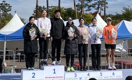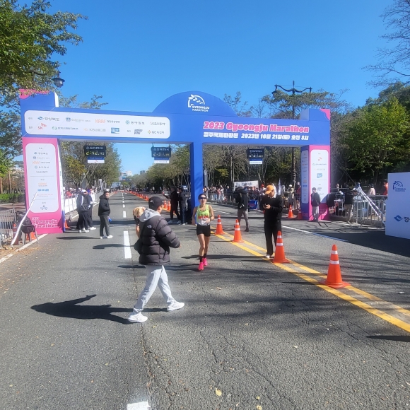 | 김천시청 육상단 소속의 김가이 선수가 지난 10월 21일 경주에서 펼쳐진 「2023 동아 경주국제마라톤」에서 2시간 42분 41초의 기록으로 작년에 이어 올해에도 2위를 차지하였다.
