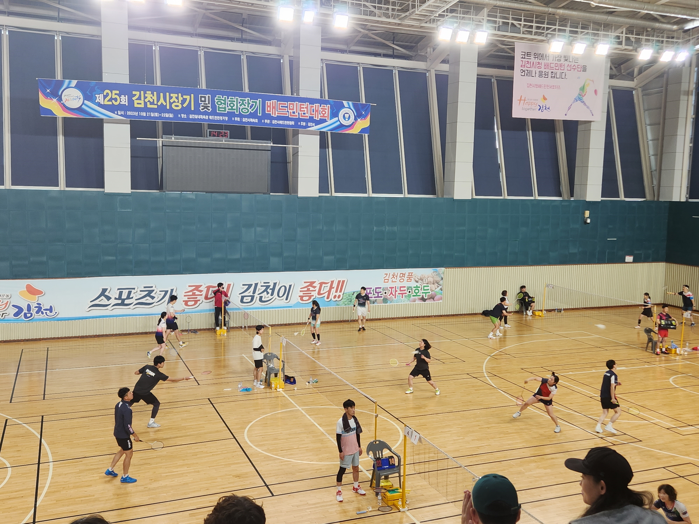 | 지난 10월 21일부터 이틀간『제25회 김천시장기 및 협회장기 배드민턴대회』가 배드민턴경기장에서 300여명이 참가한 가운데 성황리에 개최되었다.