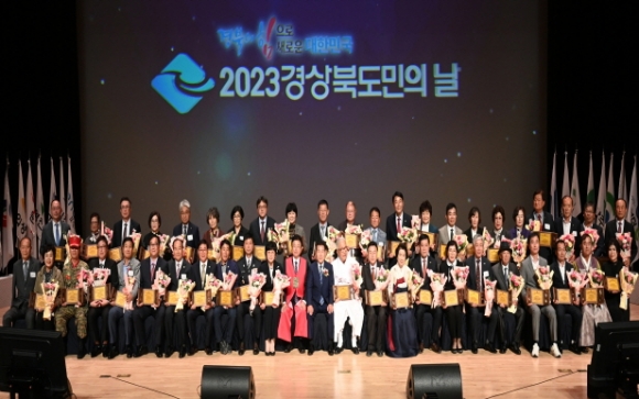 |  | | | ⓒ 김천내일신문 | 이철우 도지사, 배한철 도의회 의장, 임종식 경상북도 교육감을 비롯한 도 단위 기관단체장, 22개 시장ㆍ군수, 서울과 대구, 부산, 울산 등 출향도민회 회장단 등 1,000여 명이 참석한 가운데 열렸다. 기념행사는 도기 및 시ㆍ군기 입장, 자랑스러운 도민상 시상, 기념사, 지방시대 희망경북 퍼포먼스 순으로 진행되었으며, ‘경상북도민 당신이 대한민국입니다.’라는 주제로 경북도민의 정체성 확보로 대한민국의 미래 100년을 열고, 지방시대 완성의 결의를 다지는 장이 되었다. 이날, 경북의 명예를 높이고 지역사회 발전을 위해 봉사한 43명이 자랑스러운 도민상을 수상하여 도민들로부터 축하를 받았다. 특별상에는 국가 안보와 자유민주주의 수호 가치를 실천한 이우경 한국자유총연맹 경상북도회장을 비롯한 8명이 수상의 영광을 안았으며, 본상 부문에서는 도내 대규모 투자로 인재채용 및 지역경기 활성화에 기여한 김준형 포스코 퓨처엠 대표를 비롯한 35명이 수상하였다. 한편, 지방시대 희망경북 퍼포먼스에서는 22개 시장ㆍ군수와 이철우 도지사, 배한철 도의회 의장, 임종식 교육감이 참여해 경북이 주도하는 지방시대로 대한민국이 글로벌 중추국가로 거듭나 대한민국 미래 100년을 경북에서 열어가자는 결의를 다졌다. 윤석열 대통령은 축하전문을 통해 “정부는 경북도민과 함께 할 것이며, 국가산단 3곳, 국가첨단전략산업 특화단지 2곳을 차질 없이 추진하여 경북이 명실상부한 첨단 전략 산업의 중심지가 되도록 지원을 아끼지 않겠다”며 경북이 가고자 하는 길을 응원하였으며,우동기 지방시대위원장은 축하 영상메시지를 통해 “지방이 주도하는 강력한 균형발전을 통해 대한민국 어디서나 살기 좋은 지방시대를 만들어 가는데 경상북도가 주도적인 역할을 해 줄 것”을 당부하였다. 이철우 경북도지사는 기념사에서 “모든 국민이 대한민국 어디에 살더라도 행복한 세상을 만드는 것이 역사가 우리에게 준 준엄한 명령이다”라며, “위기 극복의 DNA를 가진 경북의 저력인 ‘문화(文化)의 힘’, ‘농도(農道)의 힘’, ‘과학(科學)의 힘’, ‘대구ㆍ경북 신공항의 힘’을 통해 경북이 바뀌고, 대한민국이 달라지는 지방시대 大혁명을 성공시킬 수 있도록 도민의 힘을 모아달라”고 강조하였다.
