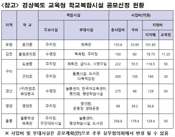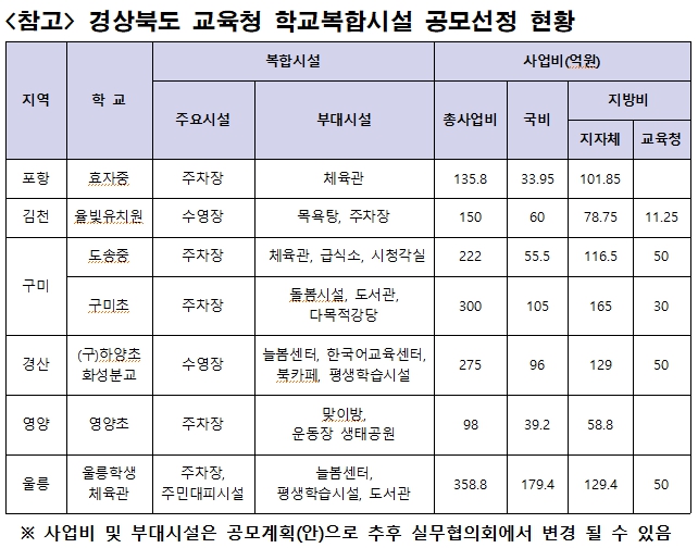 <참고> 경상북도 교육청 학교복합시설 공모선정 현황