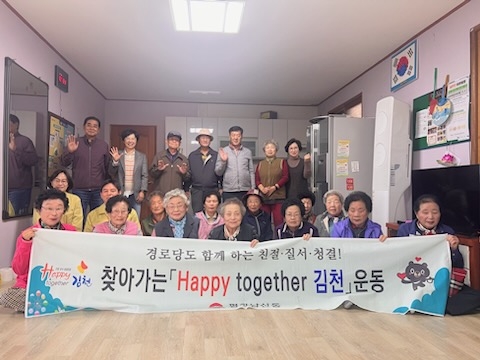 찾아가는 경로당 교육은 「Happy together 김천」 운동의 목적으로, 노인 인구 비율이 높은 평화남산동의 특성을 반영하여 강사가 직접 경로당을 방문하여 교육하는 방식으로 진행된다. 성숙한 시민 의식을 고취하는 한편 생활 속 건강 실천을 통해 해피투게더 운동의 자발적 참여 분위기 확산을 위해 추진하고 있다. 오전에는 박주아 강사, 오후에는 박선규 강사의 강연으로 남산, 후생 경로당 회원들을 대상으로 교육을 진행했다.