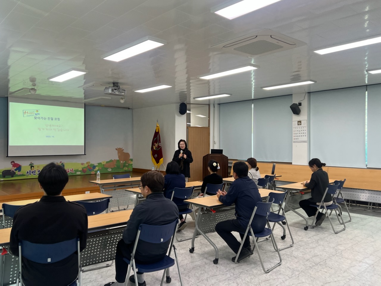 이번 교육은 친절 전문 강사를 초빙하여 소통과 공감의 친절 서비스 생활화로 시민 중심의 민원 서비스를 제공하고자 진행했다. 민원인과 소통하는 대화법 및 친절 자세, 민원 응대 인사 표현, 공직자와 민원이 느끼는 친절의 차이점에 대해 배우는 시간을 가졌다.