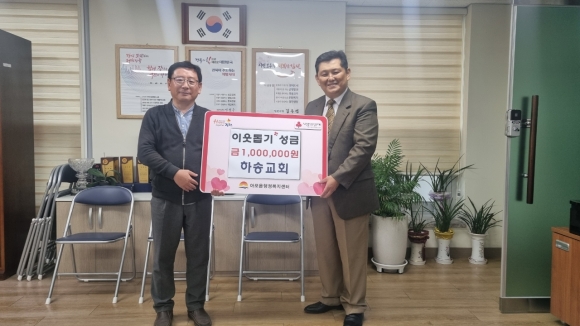 아포읍 하송교회, 이웃돕기 성금 100만 원 기탁