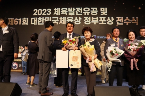 |  | | | ⓒ 김천내일신문 | | 김천시청 배드민턴단 오종환 단장이 배드민턴 선수 양성 및 발전에 이바지한 공로로 대한민국 체육훈장 백마장을 수상했다.문화체육관광부는 제61회 스포츠의 날(10월15일)을 기념해 지난달 10월31일 서울 더플라자호텔에서 2023년 체육발전유공 훈포장과 제61회 대한민국체육상을 수여했다.