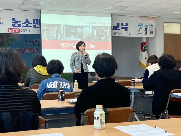 | 농소면(면장 김성봉)은 지난 11월 1일 행정복지센터 2층 회의실에서 정리 수납에 관심 있는 지역주민 수강생 26명을 대상으로 주민자치센터 활성화 사업 「농소면 정리수납전문가 교육」을 시작했다.