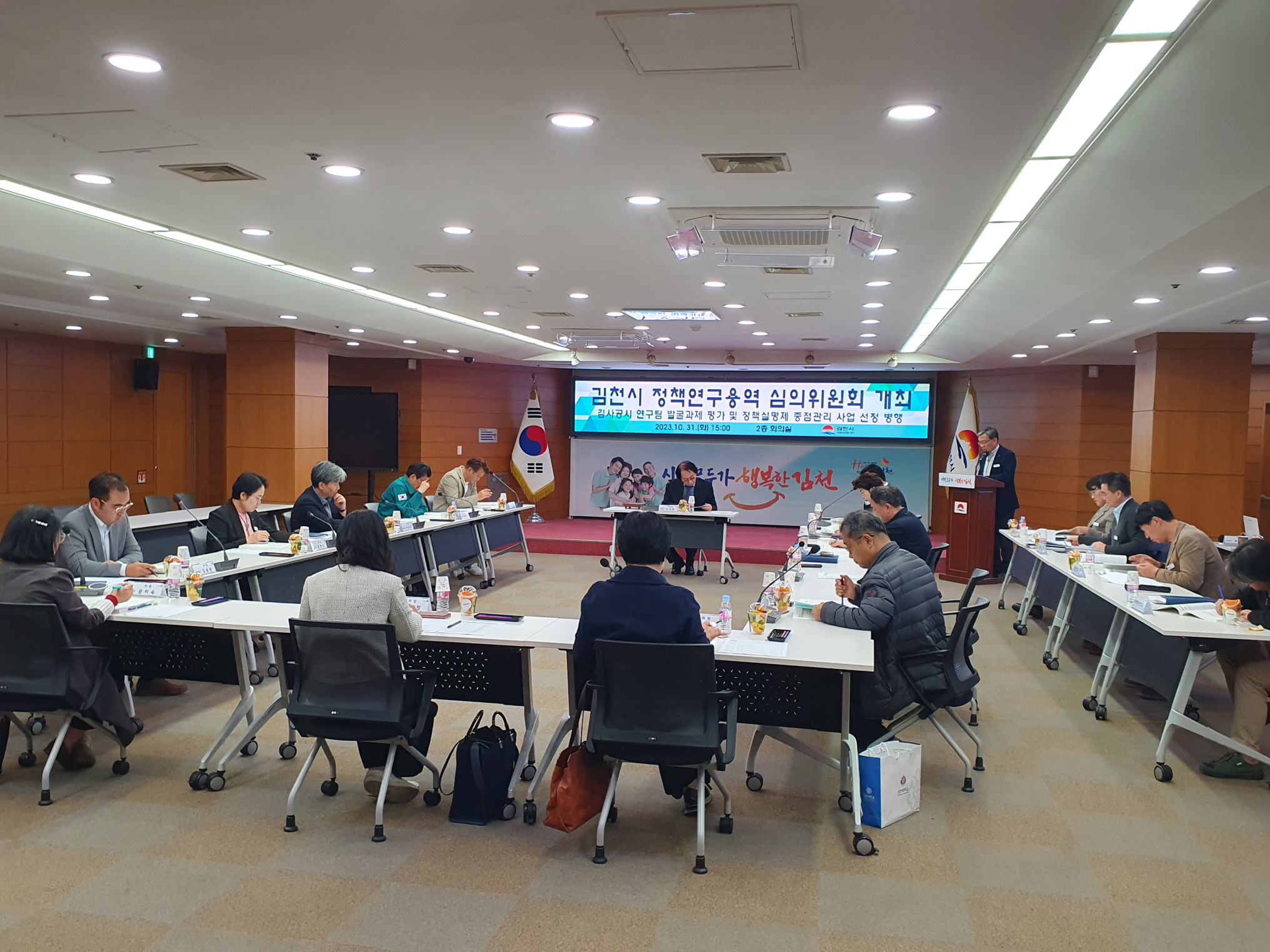 | 김천시는 지난 10월 31일, 시청 2층 회의실에서 정책 연구용역 심의위원회 회의를 개최했다. 이날 회의에서는 2024년 예정된 정책 연구용역의 심의와 더불어 2023년 ‘김천을 사랑하는 공무원 시책연구단’ 8팀이 발굴한 연구과제에 대한 평가와 2023년 정책 실명제 중점 관리 대상 사업을 선정했다.