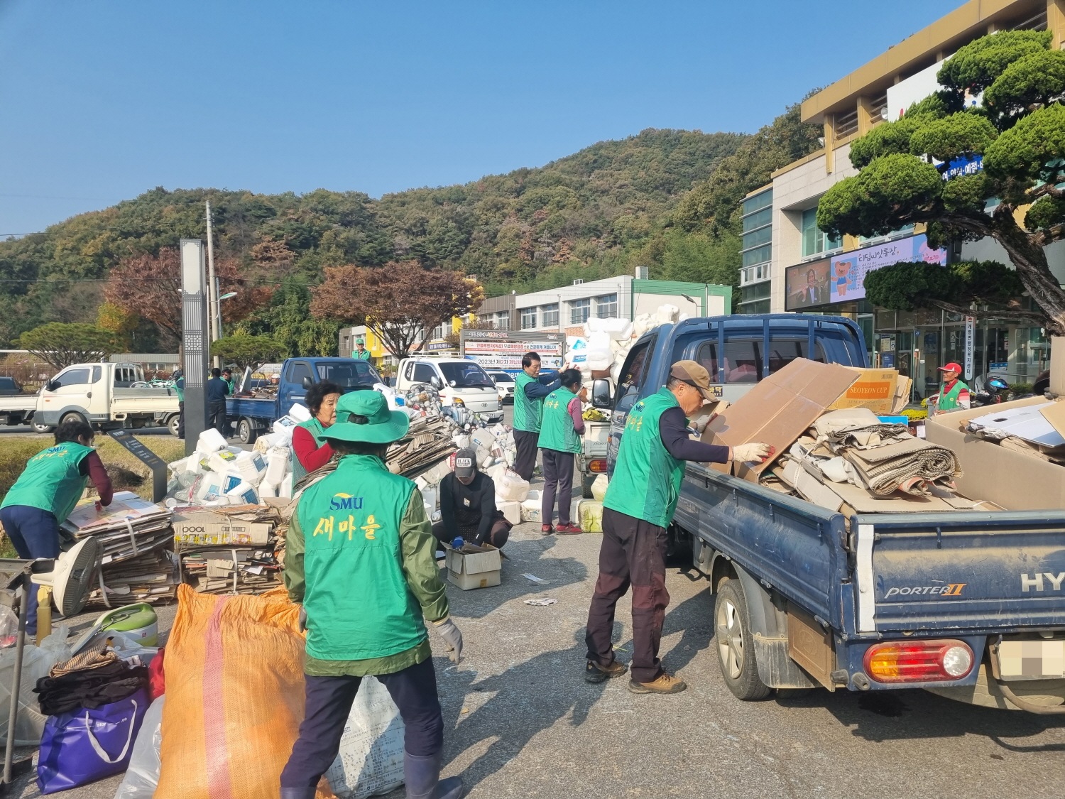 이날 행사는 버려진 폐자원을 모아 재활용하여 탄소중립을 실천하고 환경보호의 중요성을 알리기 위해 진행되었으며, 새마을 회원들은 각 마을 곳곳에 모아둔 고철, 파지, 공병, 플라스틱 등을 수거하여 분류하는데 구슬땀을 흘렸다.