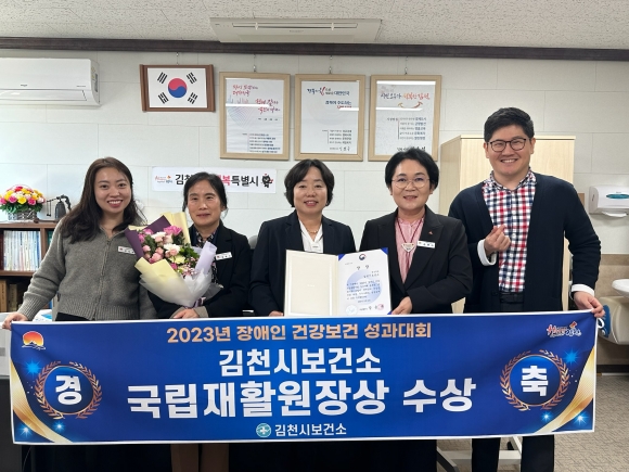 | 김천시보건소(소장 윤현숙)는 지난 11월 2일 보건복지부와 국립재활원에서 주관하는 2023년 장애인 건강 보건 통합성과대회에서 우수기관으로 선정되어 국립재활원장상을 수상했다.