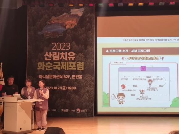 김천치유의숲은 소은주·우경인 산림치유지도사가 장애인 가족 대상 가족여행에 대한 만족감을 높이고 숲에 대한 친근감을 증진하고자 지역관광자원과 연계한 가족 단합력 증진 산림치유 프로그램을 제안, 최우수 프로그램에 선정됐다.