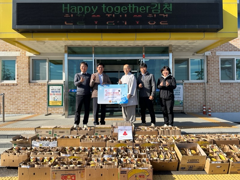 | 김천시 농소면에 있는 문수암(오상 스님)이 지난 11월 8일 농소면 행정복지센터로 꾸러미(음식 및 생필품) 170묶음을 후원했다.