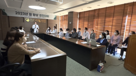 이날 행사는 이왕복 병원장의 격려사와 부서별 QI경진, 23년도 낙상예방활동 소개, 심사평 및 시상, 총평 순서로 진행되었다.