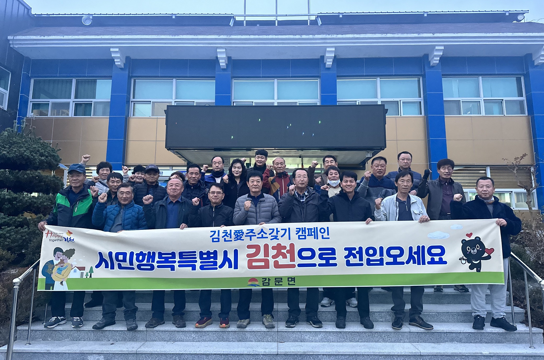 김중곤 감문면장은 “인구 감소가 전국적인 문제인 만큼 감문면에서도 항상 관심을 가지며 이장협의회를 비롯한 감문면 기관단체와 협력해 지속해서 김천 愛 주소 갖기 운동을 전개하겠다.”라고 말했다.