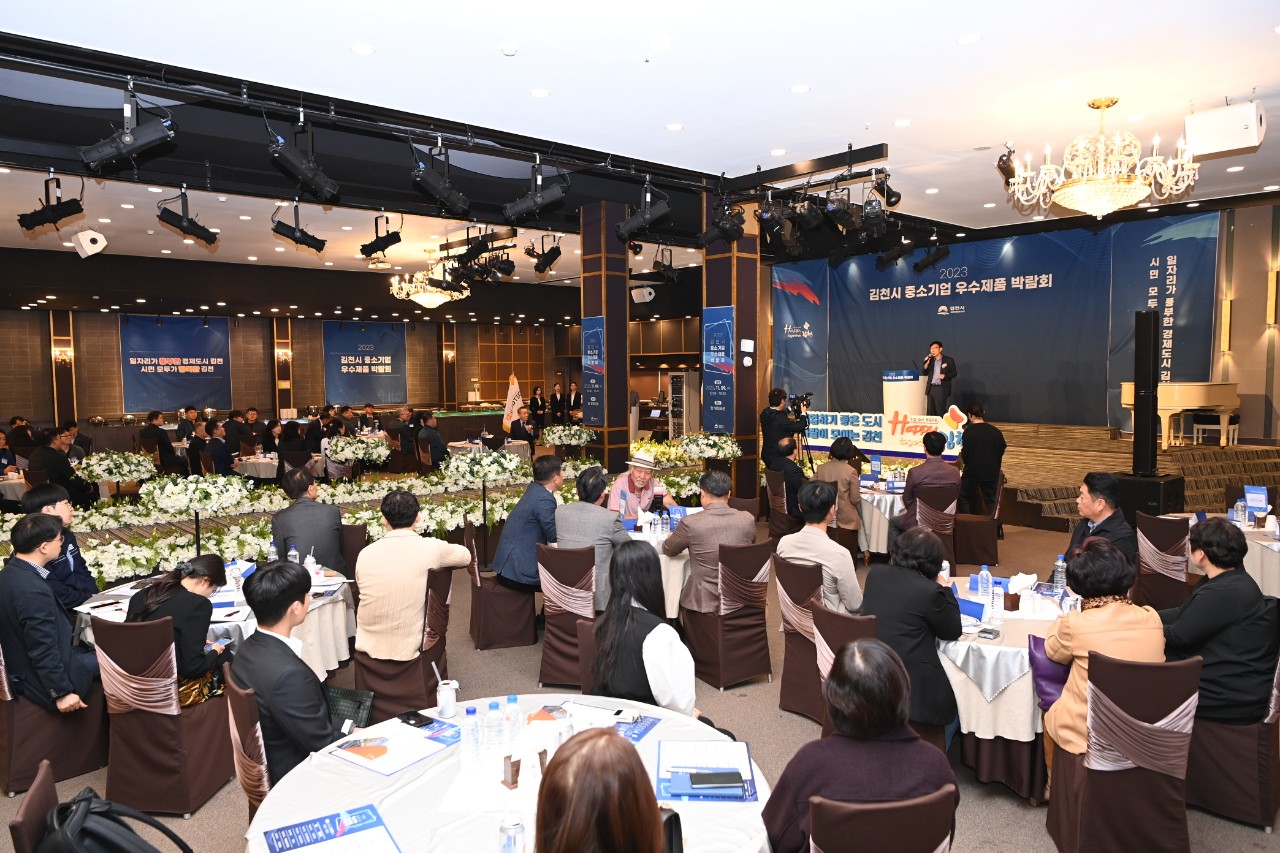 | 김천시는 지난 11월 9일 김천 탑웨딩타운에서 지역 중소기업의 우수 생산 제품을 홍보하고 국내외 판로개척 지원을 위해 「2023 김천시 중소기업 우수제품 박람회」를 개최했다.