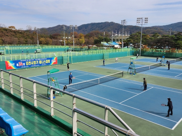 | 지난 11월 11일 『제34회 김천시장기 테니스대회』가 종합스포츠타운 테니스장에서 동호인 300여 명이 참가한 가운데 성황리에 개최되었다.