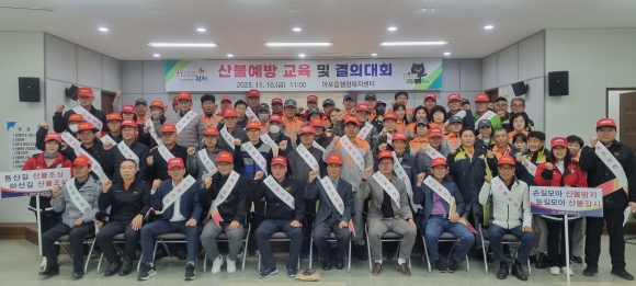 | 아포읍(읍장 김현인)에서는 2023년 가을철 산불 조심 기간의 시작과 산불재난 국가 위기 경보 「관심」 단계 발령에 따라 산불 발생 없애기(제로화)를 목표로 산불 선제 대응에 발 벗고 나섰다. 이를 위해, 아포읍은 11월 10일 아포농협 농산물유통센터에서 기관단체장, 이장단, 남녀의용소방대, 공무원, 산불감시원 등 100여 명이 참여한 가운데 가을철 산불 예방 교육을 하고 결의대회를 개최했다.