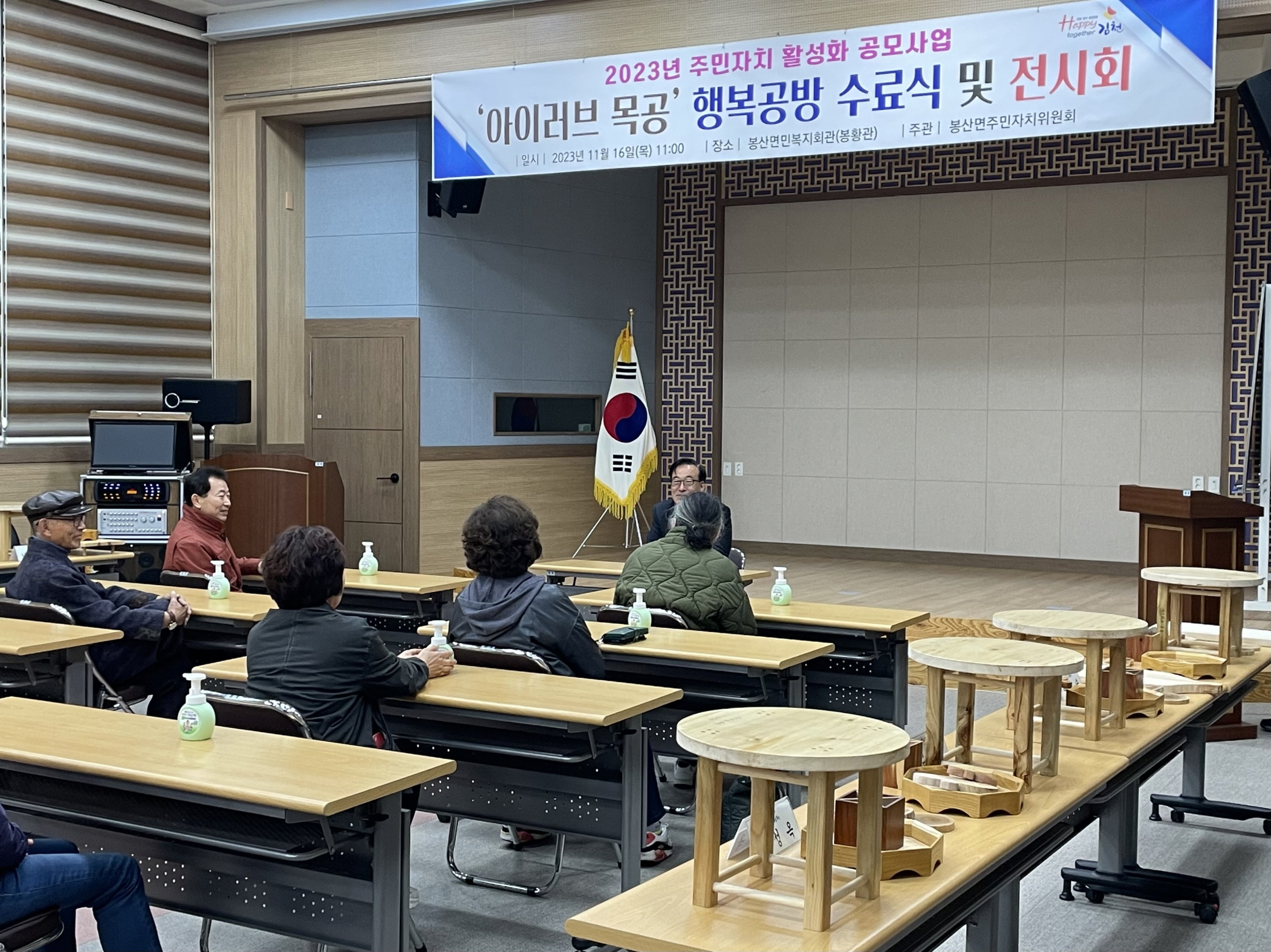 2023년 주민 자치 활성화 공모사업인 ‘아이러브 목공’ 행복 공방 교육은 9월 7일부터 11월 16일까지 총 10회의 과정으로 진행되어, 교육생들은 도마, 화분 받침대, 컵 받침, 쟁반, 연필꽂이, 원형 미니 의자, 문패 제작 과정을 수강했다.