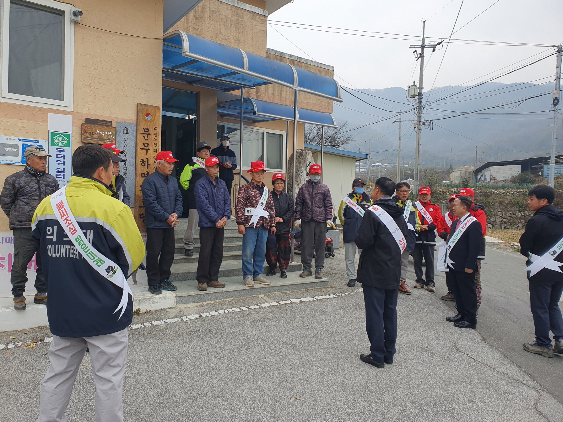 | 김천시 감문면(면장 김중곤)은 11월 16일, 가을철을 맞이하여 산불에 대한 경각심과 산불 예방 분위기를 확신시키기 위해 찾아가는 산불 예방 결의대회를 개최했다.