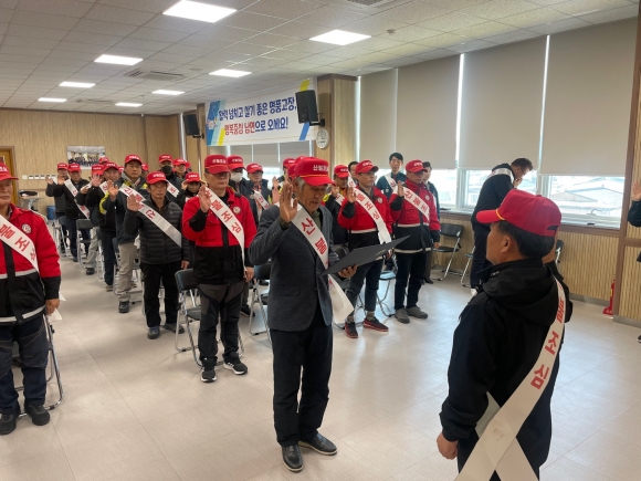 | 김천시 남면 행정복지센터(면장 이광수)는 지난 11월 21일 행정복지센터 3층 회의실에서 윤영수 시의원을 비롯해 단체장, 이장, 산불감시원, 의용소방대원과 공무원 등 100명이 참석한 가운데 산불방지 결의대회와 산불 예방 교육을 시행했다.