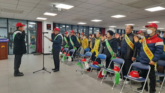 이날 결의대회는 가을철 산불 조심 기간을 맞아 산불 예방 및 피해 최소화를 위해 산불방지에 대한 의지를 확고히 하고 산불 예방 활동을 효과적으로 추진하고자 개최했다. 내빈 인사에 이어 허은 통장협의회장의 산불 예방 결의문 낭독, 산불 예방 교육, 기념 촬영 순으로 진행됐다.