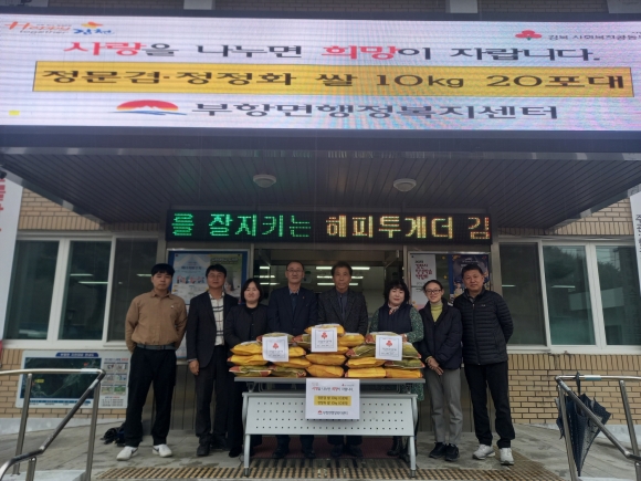 | 지난 11월 16일, 정문겸 자산동 영농회장과 아들 정정화 씨가 부항면 저소득 가정을 위해 백미 10kg 20포를 부항면 행정복지센터(부면장 박세환)에 기부했다.