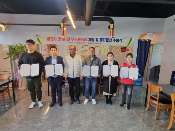 김천시 맛·깔·친 우수음식점 지정 및 재지정서 수여