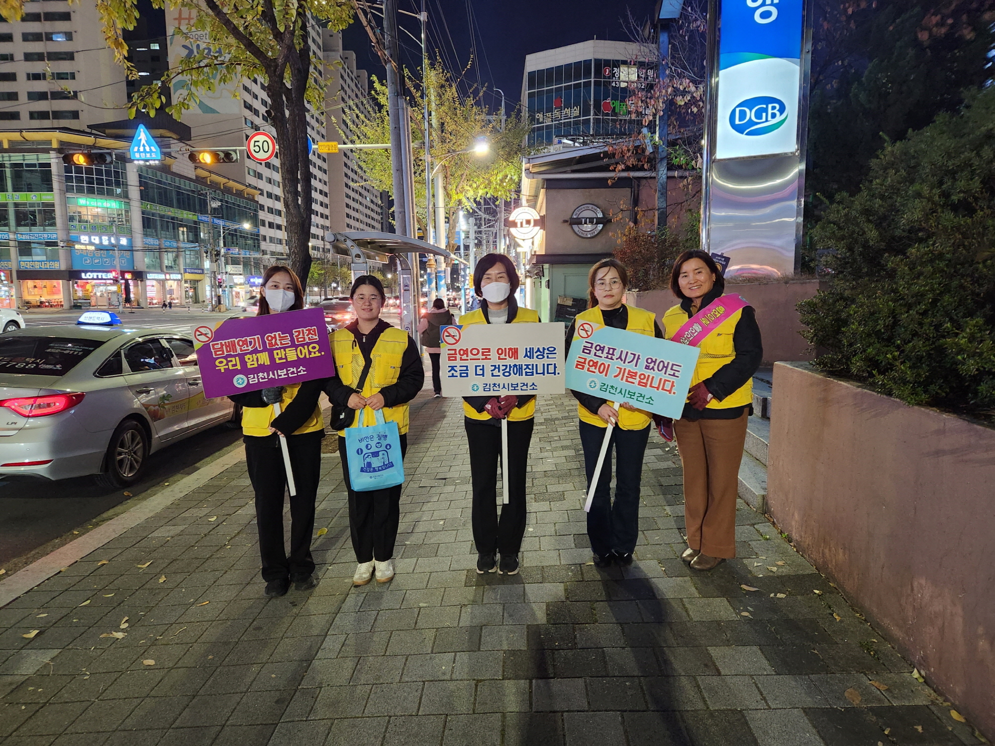 | 김천시보건소(소장 윤현숙)는 11월 22일 김천경찰서, 김천교육지원청과 합동으로 ‘2023년 하반기 금연 구역 합동 지도단속 및 금연운동(캠페인)’을 실시했다.
