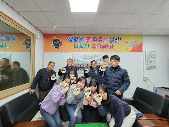 | 봉산면(면장 김흥연)은 11월 23일 봉산면 행정복지센터 면장실에서 면 직원들을 대상으로 청렴 멋 글씨(캘리그라피) 만들기 시간을 가졌다.