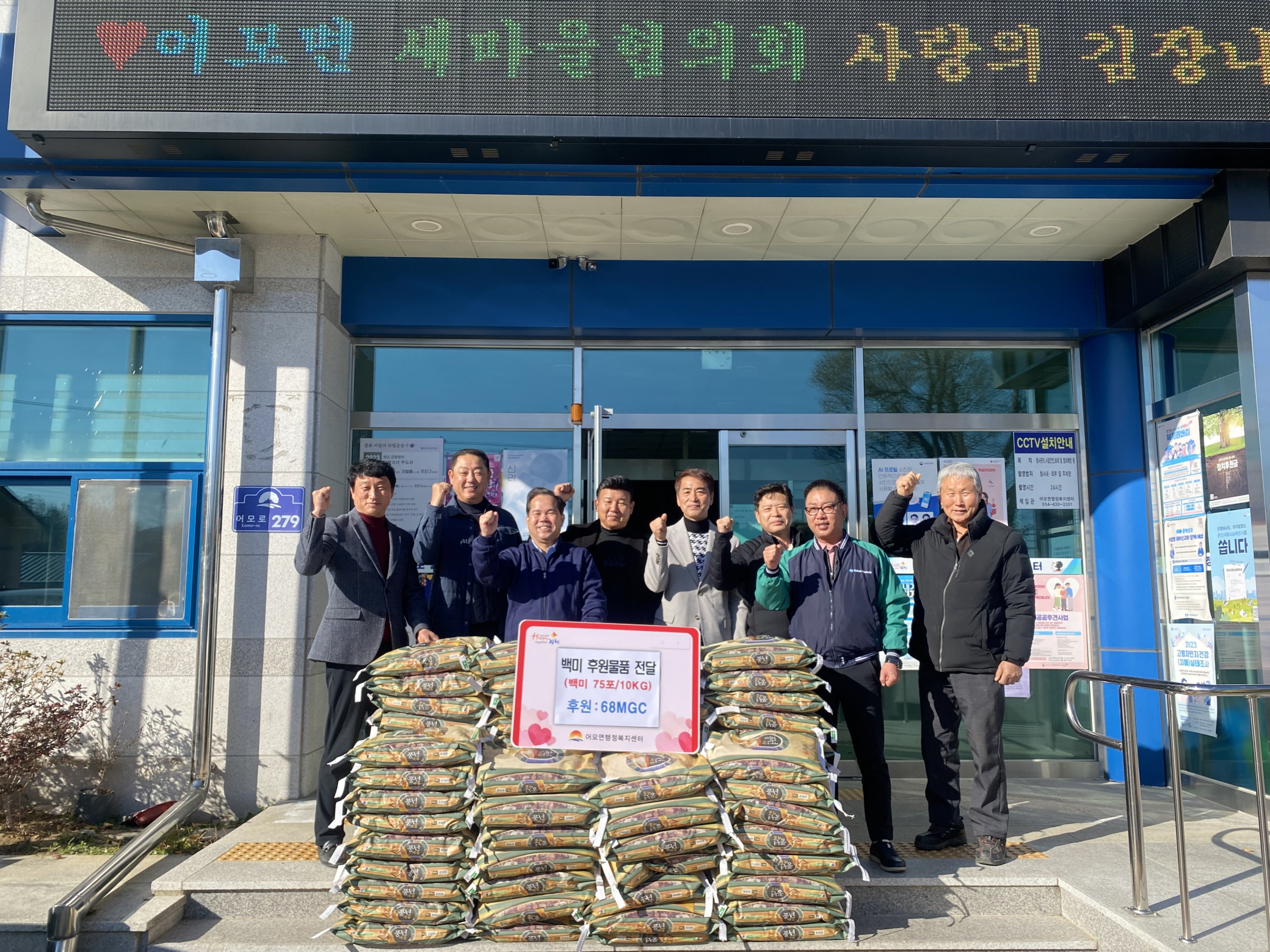 | 골프 동호회 68MGC(회장 박두용)는 11월 24일 겨울을 맞이하여 어모면 행정복지센터에 180만 원 상당의 백미 75포를 기탁했다.