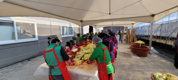 추운 날씨임에도 새마을 남녀지도자 30여 명이 참여한 가운데 이틀간 배추 300여 포기를 소금에 절이고 직접 양념을 만들며 정성껏 김치를 담갔다. 이날 정성스럽게 담근 김치는 관내 독거노인, 기초생활수급자 등 취약계층 100여 세대에 전달됐다.