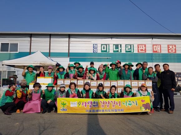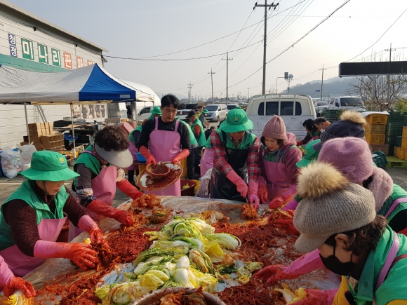 | 김천시 아포읍 새마을남녀협의회(협의회장 전장철, 부녀회장 권경애)는 11월 22일부터 23일까지 2일간 아포 청정 미나리 하우스에서 직접 김장하고 홀로 사는 노인 등 불우이웃을 위해 따뜻한 겨울나기 사랑의 김장 김치 나누기 행사를 진행했다.