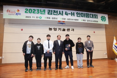 | 김천시 4-H 본부(회장 이수근)와 4-H 연합회(회장 이희원)는 지난 11월 23일 김천시농업기술센터에서 4-H 회원과 지도교사, 학교 4-H 회원 130여 명이 한자리에 모인 가운데 「2023년 김천시 4-H 한마음대회」를 개최했다.