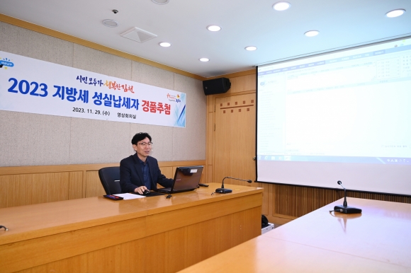 | 김천시에서는 11월 29일, 시청 3층 영상회의실에서 2023년 지방세 성실납세자 경품 추첨 행사를 진행했다.
