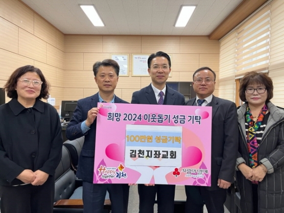 |  | | | ⓒ 김천내일신문 | | 지좌교회(목사 장철한)는 11월29일 행정복지센터(동장 남상연)를 방문하여 「희망 2024 이웃돕기」 성금 100만 원을 전달했다.