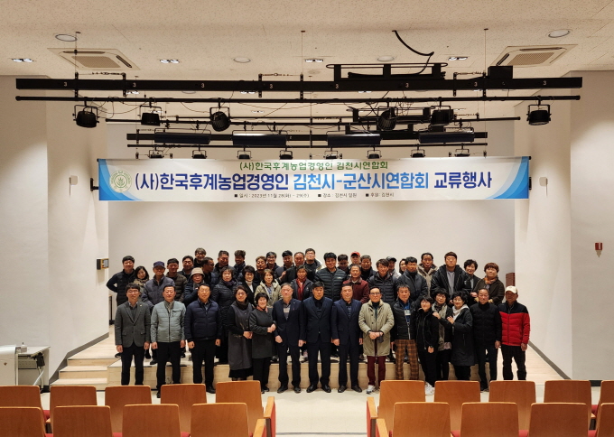 |  | | | ⓒ 김천내일신문 | | 한국후계농업경영인 김천시연합회(회장 최진호)는 지난 11월28~29일 양일간에 걸쳐 자매도시 군산시연합회(권한대행 이영종) 회원 30여 명을 초청, 양 도시 간 소통과 화합, 상생을 위한 교류 행사를 추진했다고 밝혔다.