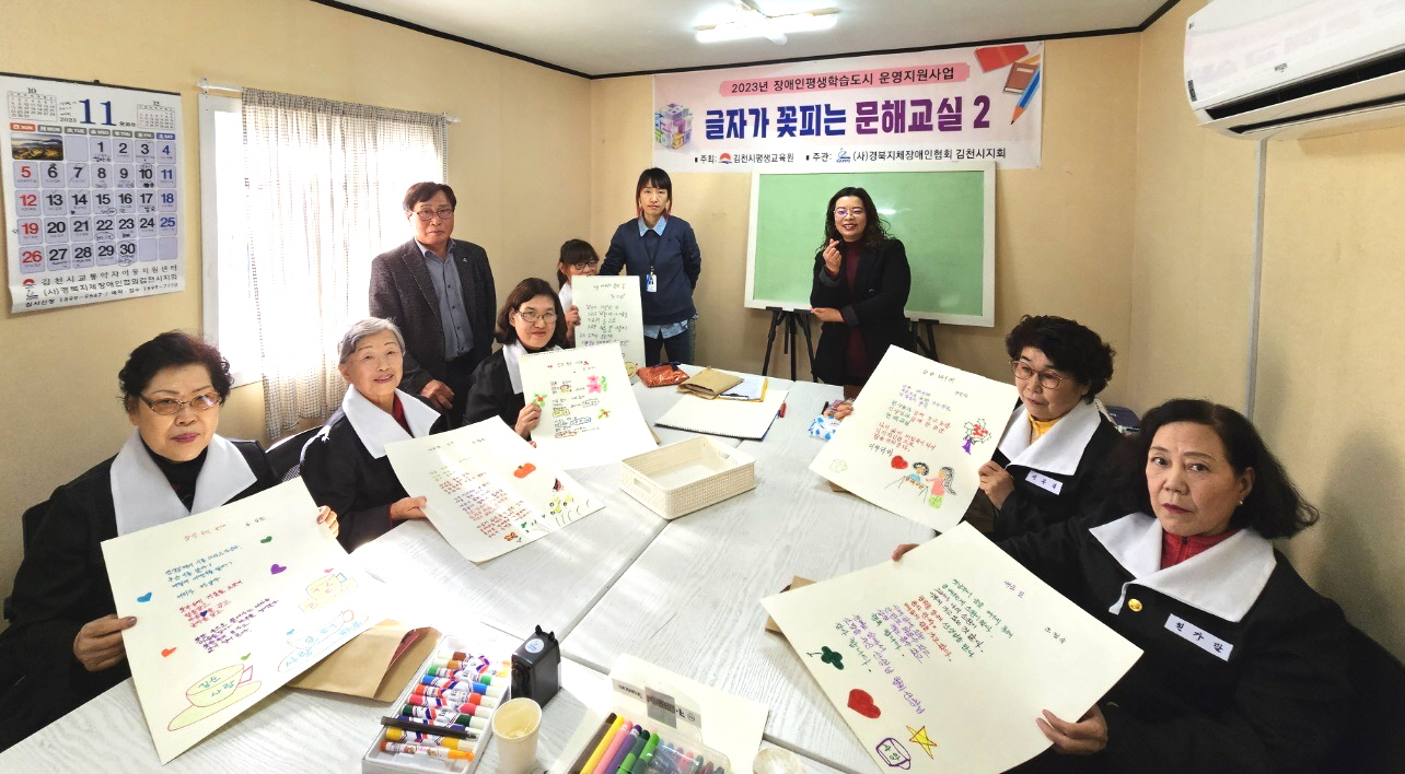 | (사)경북지체장애인협회 김천시지회(지회장 박희만)는 11월 30일 지회 보조강의실에서 여성장애인 및 임직원 등 10여명이 참석한 가운데 “글자가 꽃피는 문해교실 2” 종강식을 가졌다.