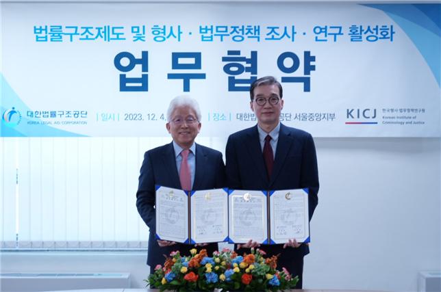 | 대한법률구조공단(이사장 이종엽)은 12월 4일 한국형사․법무정책연구원(원장 하태훈)과 법률구조제도 개선 및 형사․법무정책 조사․연구 활성화를 위한 업무협약(MOU)을 체결했다고 이날 밝혔다.