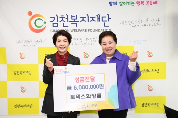 | 김천복지재단은 지난 12월 4일 기능성 기초화장품 전문기업인 로덱스 화장품(대표 구숙희)으로부터 결손아동을 위한 성금 500만 원을 기탁받았다고 밝혔다.