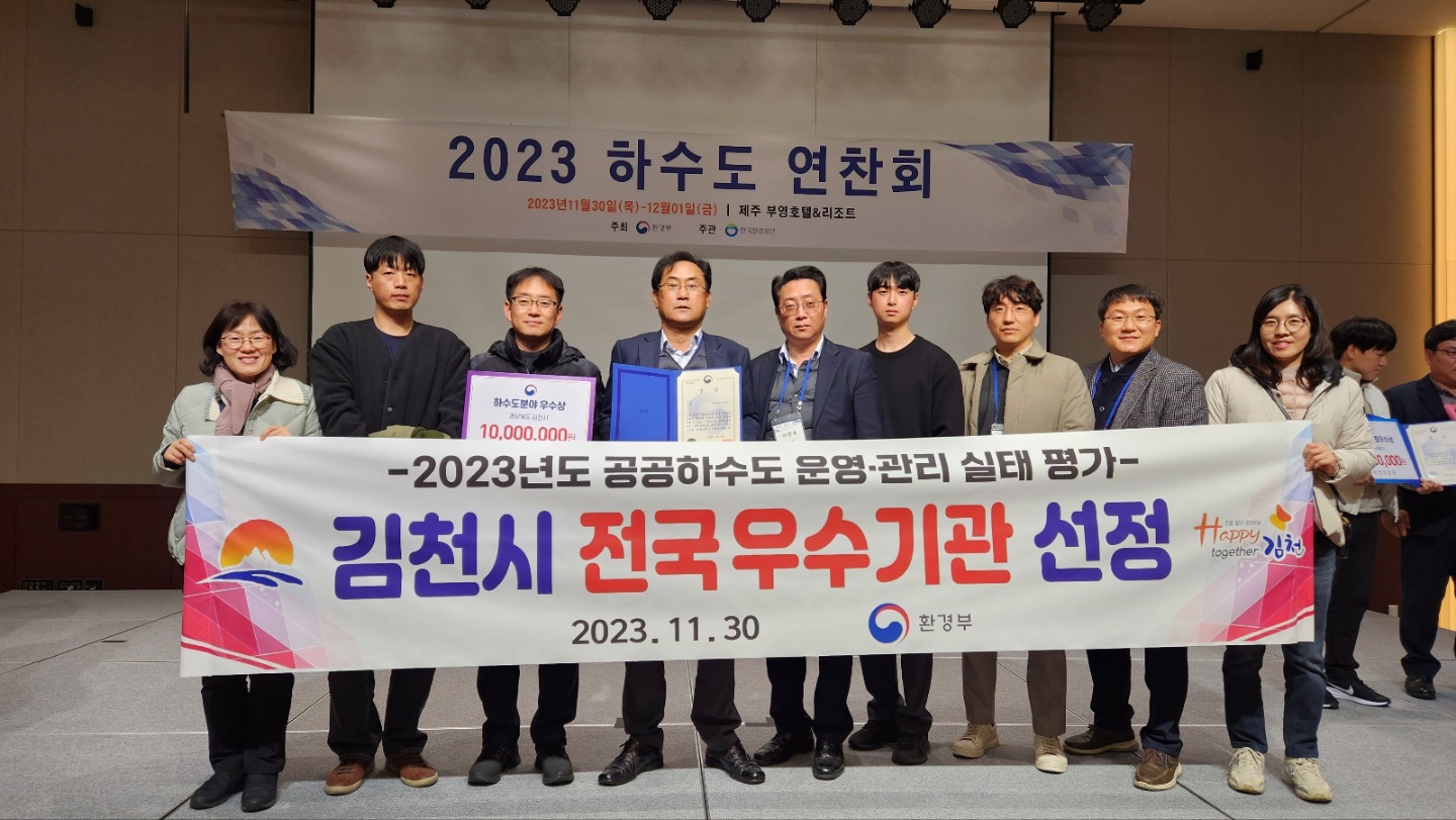 | 김천시는 11월 30일 환경부가 주관하는 “2023년도 공공하수도 운영관리 실태 평가”에서 뛰어난 관리능력을 인정받아 「우수 공공하수도 관리청」 인증패를 수상했다.