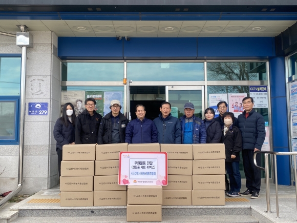 | 김천시 귀농귀촌연합회(회장 김형동)는 12월 5일 연말을 맞이하여 관내 저소득층 및 취약계층을 위해 어모면 행정복지센터에 생필품 세트 40상자를 전달했다.