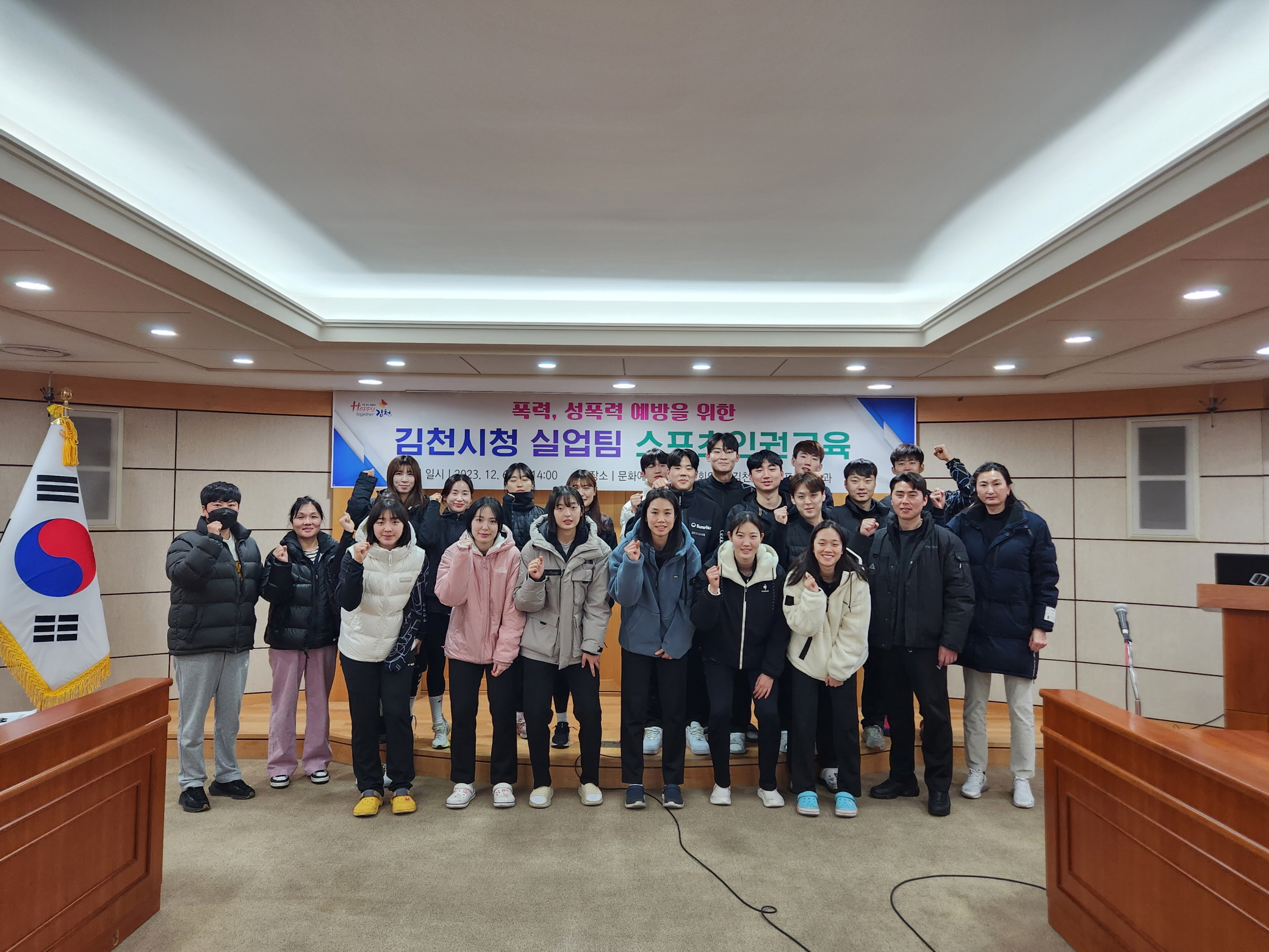 | 김천시는 12월 6일 문화예술회관 2층 국제회의실에서 시청 직장운동경기부 지도자, 선수 30여 명을 대상으로 ‘폭력, 성폭력 등 예방 교육 및 스포츠 인권 교육’을 시행했다.