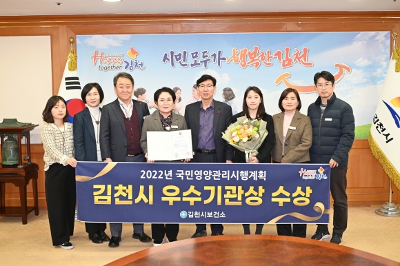 수상은 건강증진 사업 국민 영양 관리 시행계획 분야로 2022년도 국민 영양 관리 시행계획 우수사례를 제출한 전국 52개 시군구 중 15개 기관이 우수기관으로 뽑혔는데, 그중 김천시가 도내 유일하게 선정되는 쾌거를 이루었다. 포상 훈격은 보건복지부 장관 표창이다.