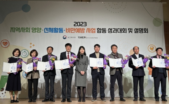 | 김천시 보건소는 12월 6일, 서울 백범김구기념관 컨벤션홀에서 열린 ‘2023년 지역사회 영양, 신체활동, 비만 예방 사업 합동 성과대회’에서 건강증진 사업 유공 기관으로 선정되어 우수기관상을 받았다.