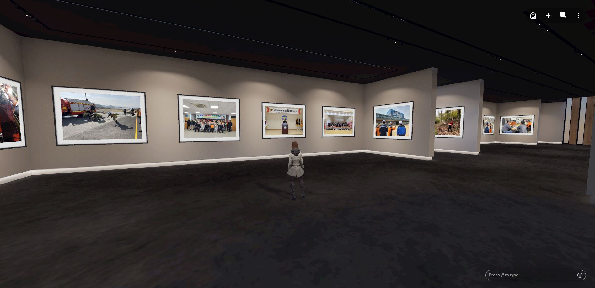 김천소방서는 가상 세계 속에 소규모 사진 전시관을 구현해 관람객들이 3D 아바타로 움직이며 김천소방서에서 실시하는 소방 활동들을 감상하고 시민의 안전을 위해 발전·연구하는 소방관들을 가깝게 느낄 수 있도록 홍보관을 구성했다.