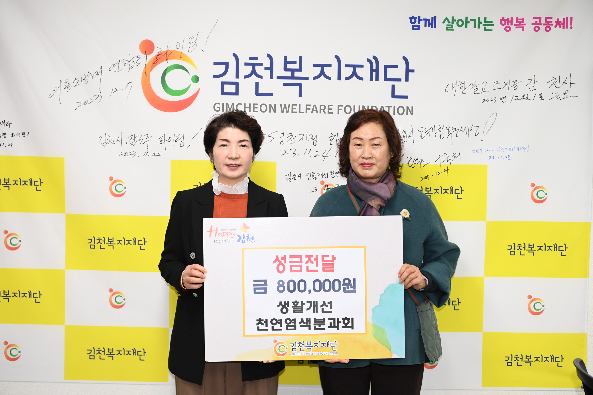 천연염색분과회, 김천복지재단에 성금 80만 원 기탁