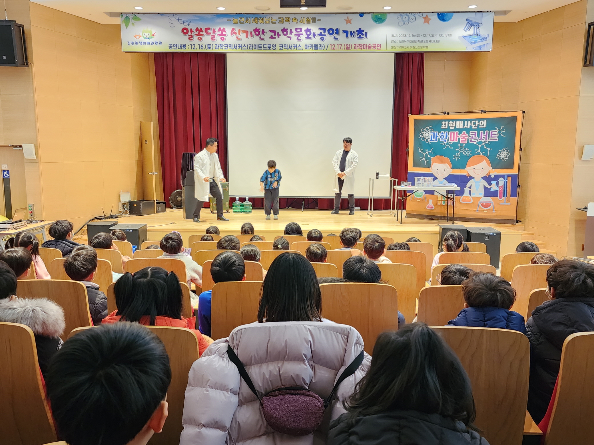 | 김천시는 지난 12월 16일부터 17일까지 2일간 김천녹색미래과학관에서 2천여 명의 어린이와 부모님들이 참여한 가운데 「알쏭달쏭 신기한 과학문화공연」을 개최했다.